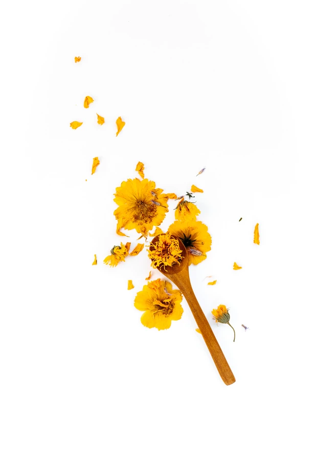 Marigold - Their yellow, orange and sometimes red color are like pure sunshine. The color of marigold petals hold up particularly well in baking while the color of other edible flowers sometimes fade. In many cases, marigolds can be pungent and we are more inclined to add them to savory dishes.