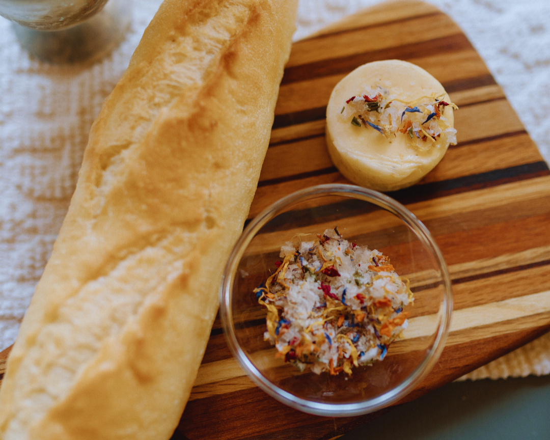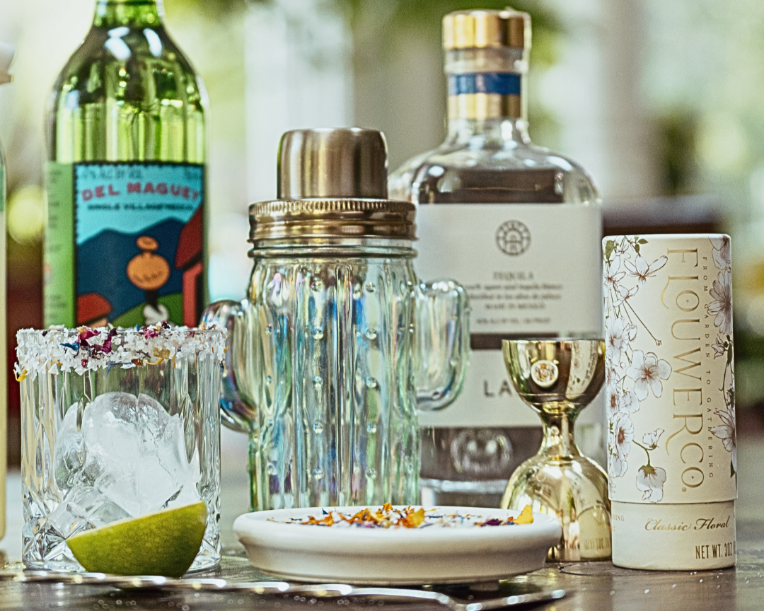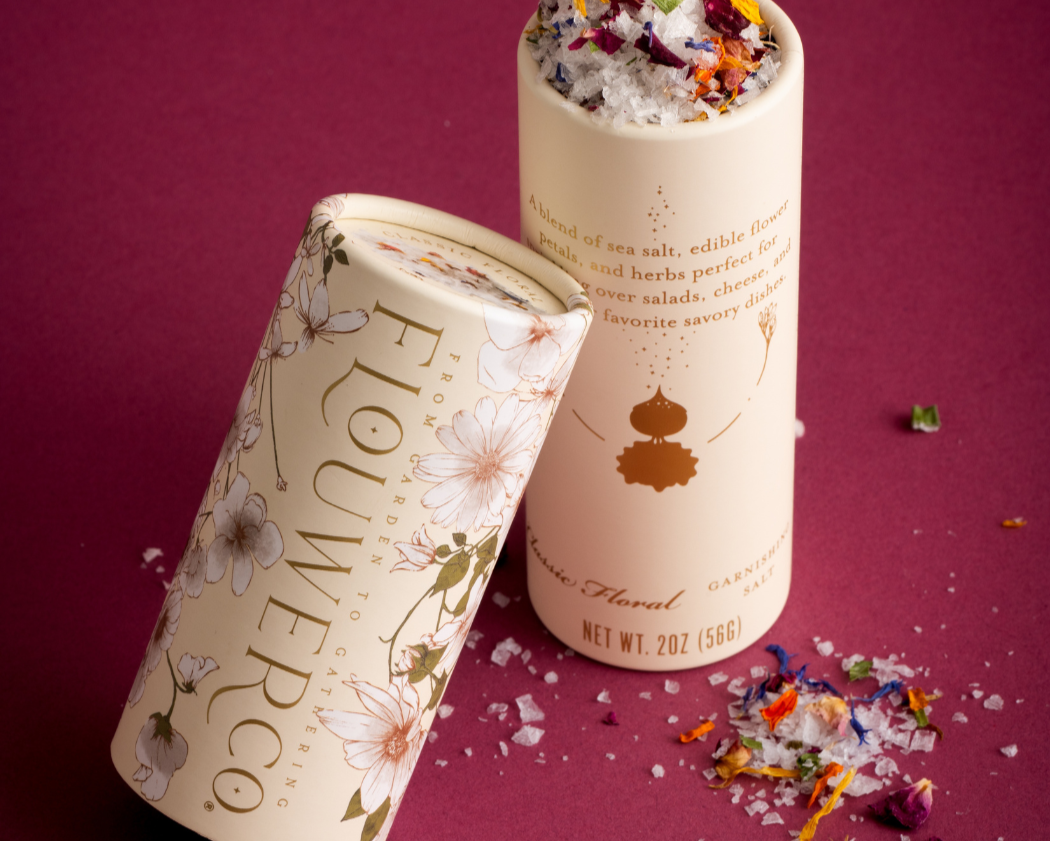Our Classic Floral Garnishing Salt will pair perfectly with your selection of one of our floral-infused Cocktail Cubes and one flavor of Finishing Sugar.