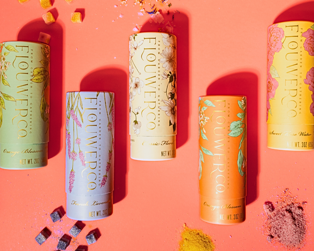 Orange Blossom Cocktail Cubes - Ingredients: Cane Sugar, Pure Orange Extract (Alcohol (90%), Natural Oil of Orange, Water), Orange Blossom Water (Propylene Glycol, Alcohol (45%), Orange Oil, Orange Blossom), Marigold Petals*, 100% Organic Annatto Powder, 100% Organic Safflower Powder. Sweet Rose Water Cocktail Cubes - Ingredients: Cane Sugar, Madagascar Bourbon Pure Vanilla Extract (Water, Cane Alcohol (35%), Cane Sugar, Vanilla Bean Extractives), Rose Water (Cane Alcohol (90%), Natural Flavors, Glycerin, Rose Oil), Organic Rose Petals, Hibiscus Flower Powder. French Lavender Cocktail Cubes - Ingredients: Cane Sugar, Pure Lavender Extract (Alcohol (66%), Water, Natural Lavender Oil), Pure Lemon Extract (Alcohol (90%), Natural Oil of Lemon, Water), Lavender, 100% Pure Black Goji Berry Powder. *Organically Grown Orange Blossom Finishing Sugar - Ingredients: Cane Sugar, Pure Orange Extract (Alcohol (90%), Natural Oil of Orange, Water), Orange Blossom Water (Propylene Glycol, Alcohol (45%), Orange Oil, Orange Blossom), Cornstarch, Marigold Petals*, 100% Organic Annatto Powder, 100% Organic Safflower Powder. Sweet Rose Water Finishing Sugar - Ingredients: Cane Sugar, Madagascar Bourbon Pure Vanilla Extract (Water, Cane Alcohol (35%), Cane Sugar, Vanilla Bean Extractives), Rose Water (Cane Alcohol (90%), Natural Flavors, Glycerin, Rose Oil), Cornstarch, Organic Rose Petals, Hibiscus Flower Powder. French Lavender Finishing Sugar - Ingredients: Cane Sugar, Pure Lavender Extract (Alcohol (66%), Water, Natural Lavender Oil), Pure Lemon Extract (Alcohol (90%), Natural Oil of Lemon, Water), Cornstarch, Lavender, !00% Pure Black Goji Berry Powder. Organic Butterfly Pea Flower. *Organically Grown Classic Floral Garnishing Salt - Ingredients: Sea Salt Flakes, Dried Herbs, Edible Flower Petals* *Organically grown. This salt does not supply iodine, a necessary nutrient.